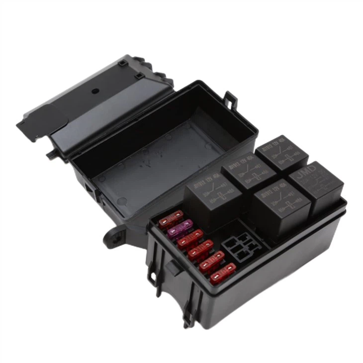 4. Sigur și durabil:Carcasa cutiei de siguranțe pentru releul mașinii este realizată din material nailon de înaltă calitate ignifugă, fiecare fantă are o decupare precisă, iar o priză cu arc este rezervată pe margine.